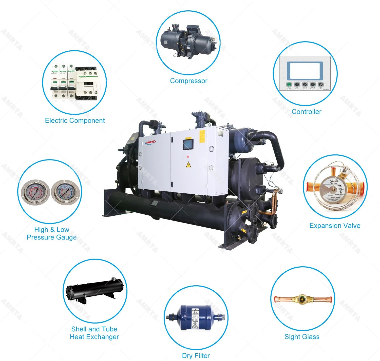 Van de het waterinham/afzet van de condensator temperatuur: 30º C/35º C, de inham van het evaporatorwater/afzettemperatuur: 12º C/7º C.